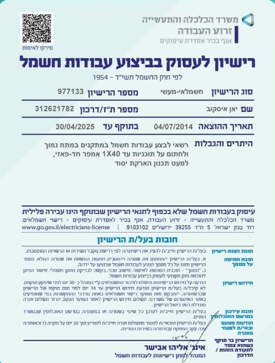 יאן איסקוב, חשמלאי באזור הצפון ובאזור השרון. מבצע את כל עבודות החשמל במגזר העסקי והפרטי. כגון: התקנה ותיקון לוחות חשמל, חשמל חכם, התקנת גופי תאורה, בדיקת הארכה עם מכשור מתקדם. כמו כן נותן שירותי תיקונים, התקנת טלוויזיות, פרוק והרכבה של ארו...
