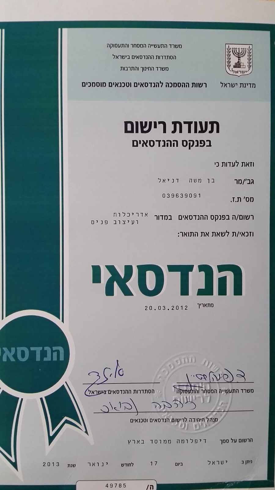 עובד יחד עם עינת בן משה, בוגרת לימודי ארכיטקטורה באוניברסיטת אריאל משנת 2014