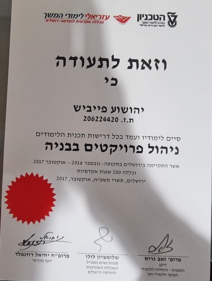 יהושע פייביש, קבלן איטום מורשה ושיפוצים בירושלים. מתמחה בכל עבודות האיטום: איטום גגות ביריעות ביטומניות, זפת, איטום קירות, איטום מרפסות, איטום שלילי ועוד.