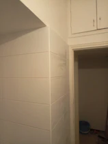 הוא היה צריך לשים ריצוף על הקיר במטבח, בפועל היה צריך גם ליישר את הקיר לפני הדבקת האריחים כדי שיהיה אחיד, וזה לא יצא אחיד. זה נראה קצת עקום בגלל שהקיר היה עקום.