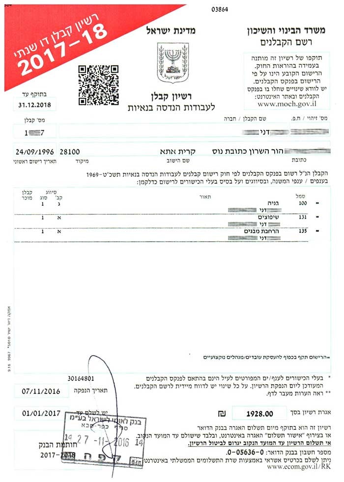 דני, בעלי חברת דני טבק המתמחה בשיפוצי בניין, בעל תעודת הנדסאי ותעודת קבלן רשום ברשם הקבלנים ובאזור השרון.