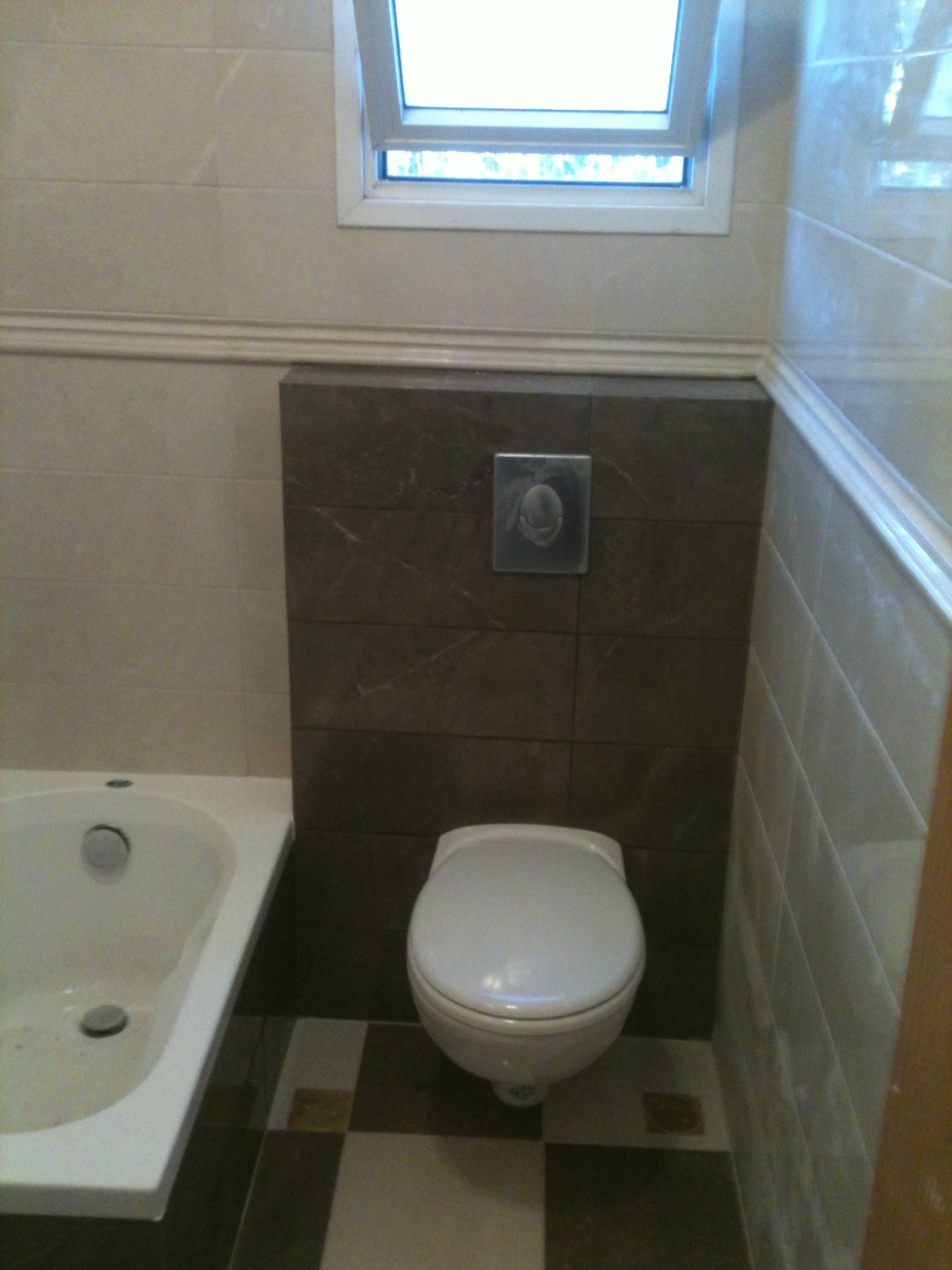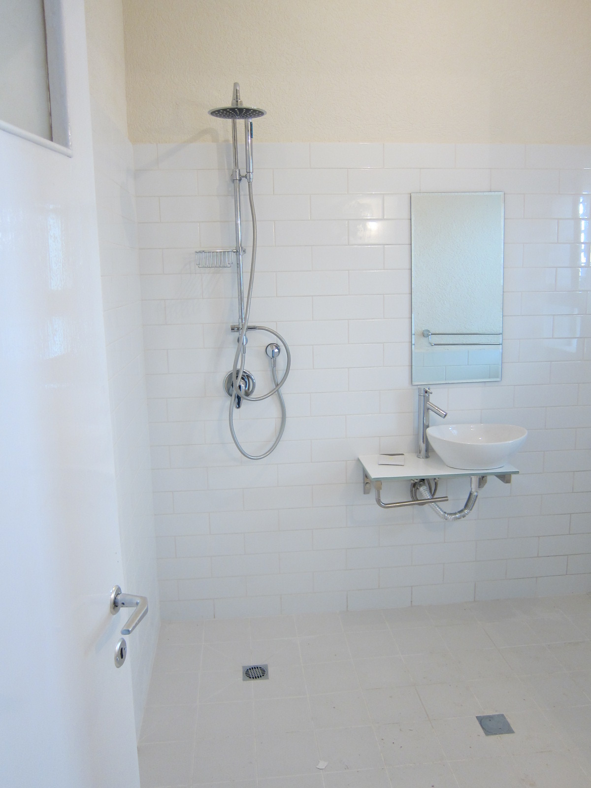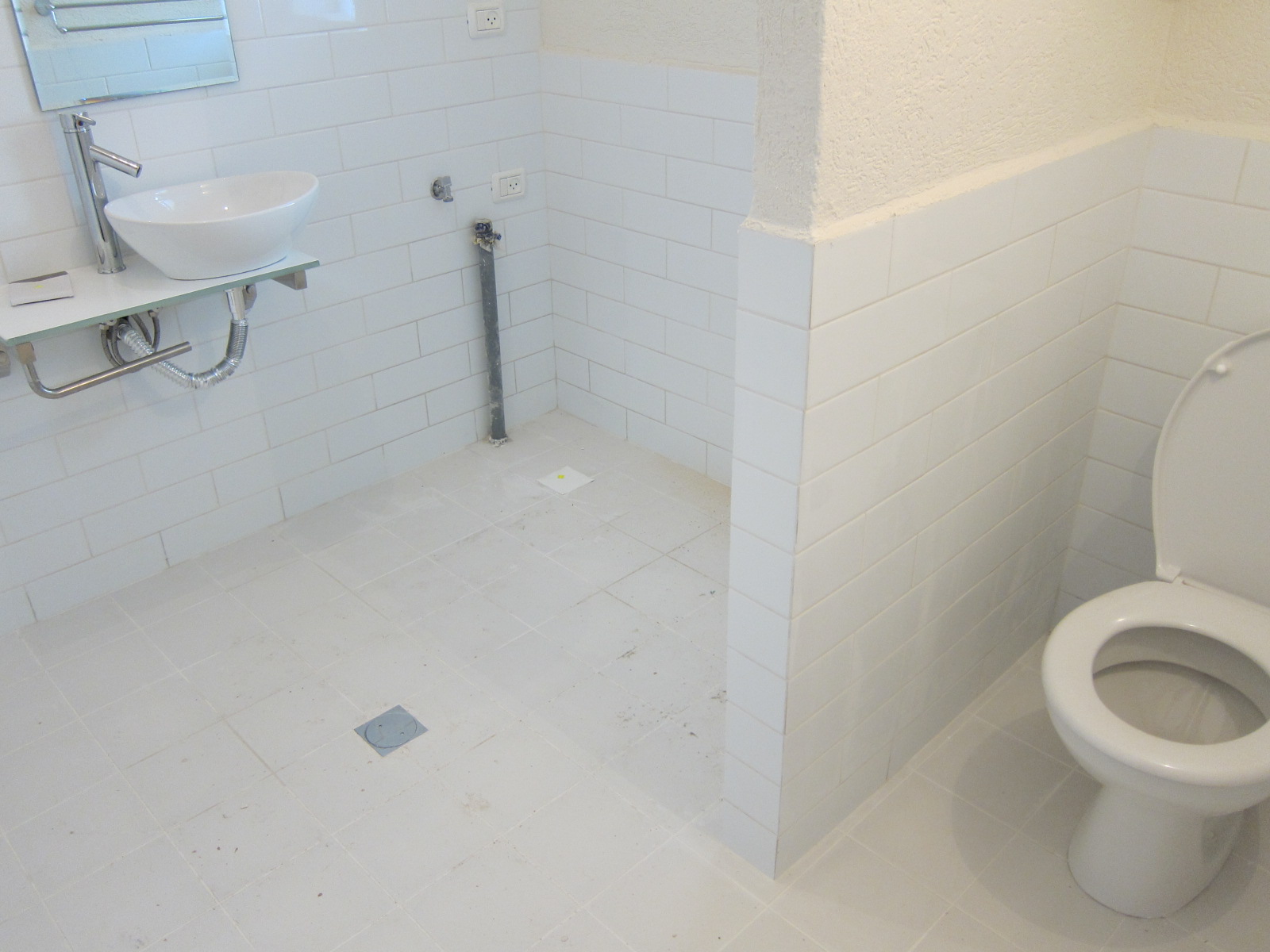 יש לציין שיש לפרק ריצוף קיים במקלחון ע"מ להכניס אמבטייה מתחת והריצוף ייגמר מעל האמבטיה ע"מ שיהיה אטום מפני חדירת מים וזה גונב שני ס"מ מרוחב האמבטיה.