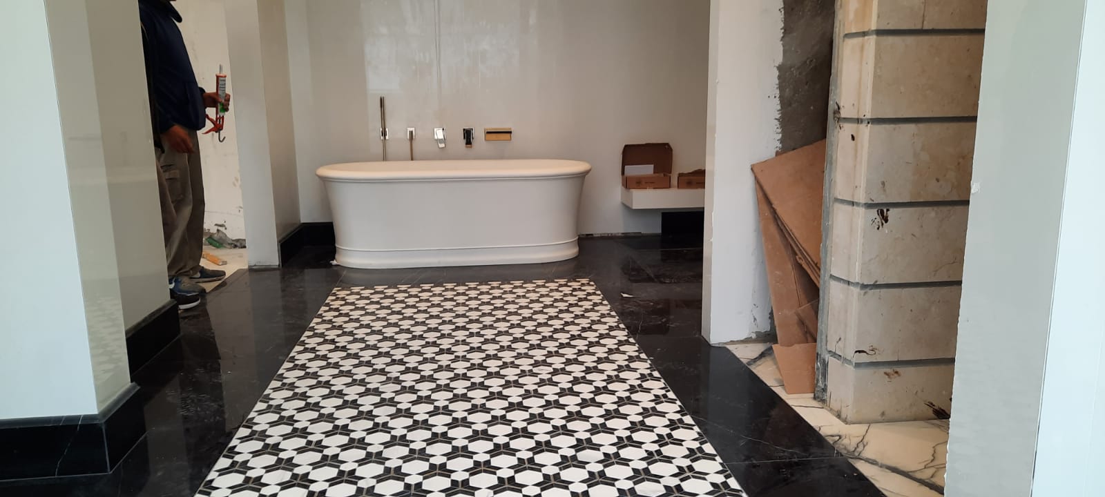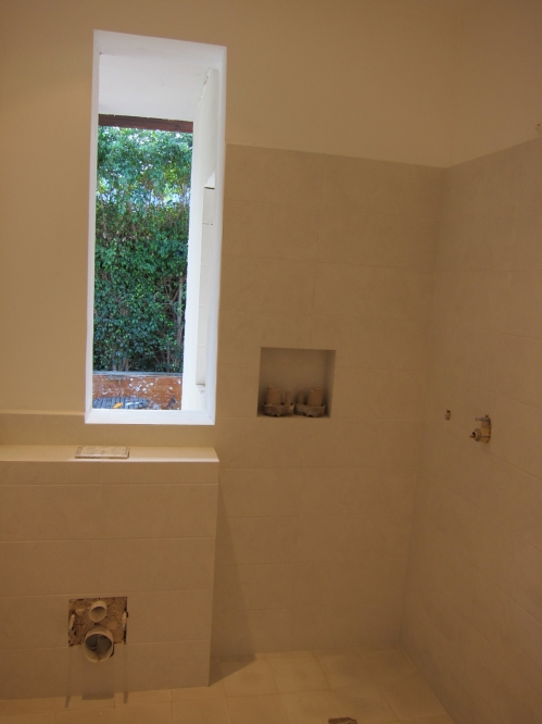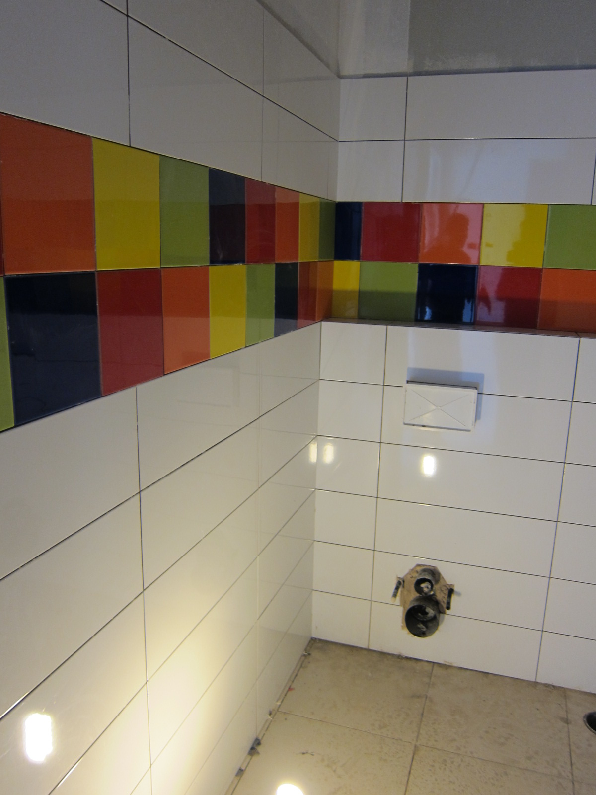 יש לציין שיש לפרק ריצוף קיים במקלחון ע"מ להכניס אמבטייה מתחת והריצוף ייגמר מעל האמבטיה ע"מ שיהיה אטום מפני חדירת מים וזה גונב שני ס"מ מרוחב האמבטיה.