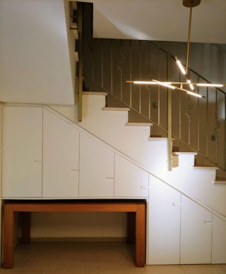 היי , הריהוט ממוקם בצורה מיטבית כל הכבוד ! אבל... ממליצה לתכנן ארון אחסון מותאם מדוייק לקיר כולל ניצול לגובה, צבעים תואמים ואחסון פנימי תליה מידוף מגירות בהתאמה אישית מנגר