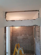הוא חסם פתח של דלת בבלוקים, רציתי שהוא ישמור לי על הדלת אם אני ירצה לפתוח אותה חזרה בעתיד אז הוא שם לי ניילון וחסם עם בלוקים ולא עם קיר גבס.