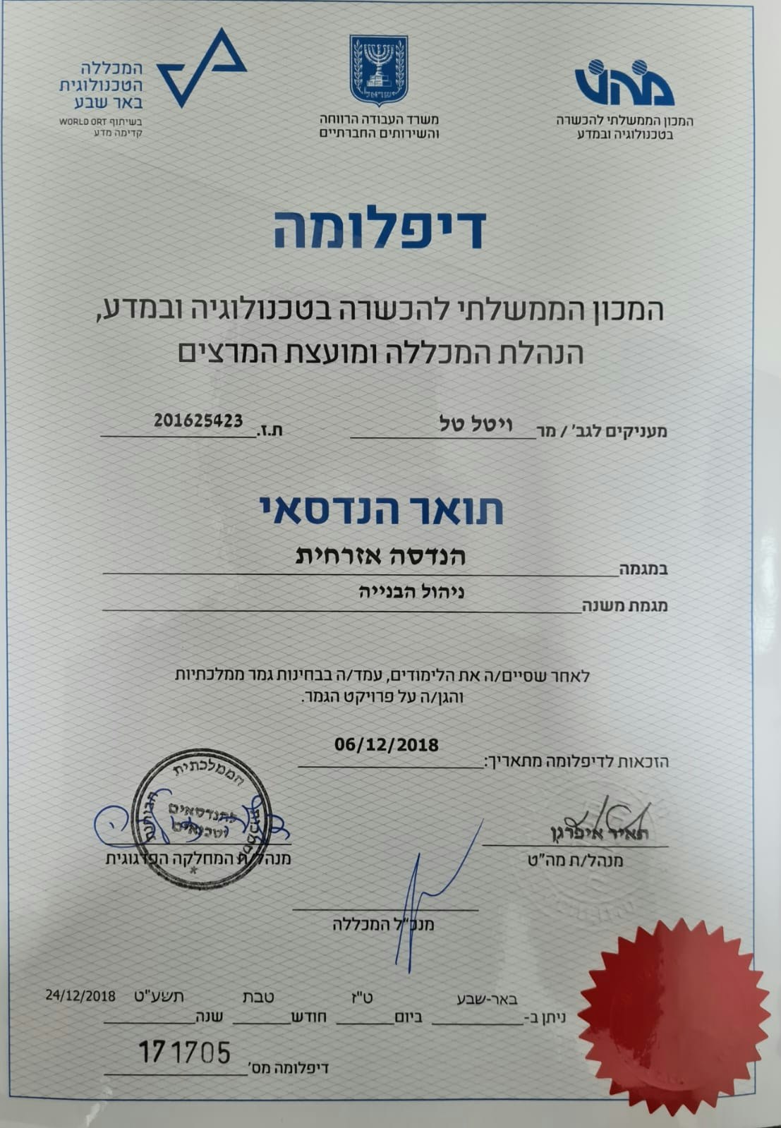 טל ויטל, קבלן שיפוצים והנדסאי בניין באזור הדרום והשפלה. מתמחה בביצוע שיפוצים כלליים לדירות, משרדים, בניית ממ"דים, שיפוץ מבנים, שיקום וחיזוק מבנים, שליכט צבעוני, טייח וכו'. בנוסף מבצע את כל עבודות השיפוצים ובפרט: שיפוצי אמבטיה, עבודות גבס, צבע, ריצוף ואינסטלציה. מתחייב לשירות אישי לכל לקוח ועבודה ברמה גבוהה ומקצועית.