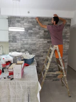 מריחה של שתי שכבות שפכטל אמריקאי והקיר חדש לאחר שפשוך וצביעה