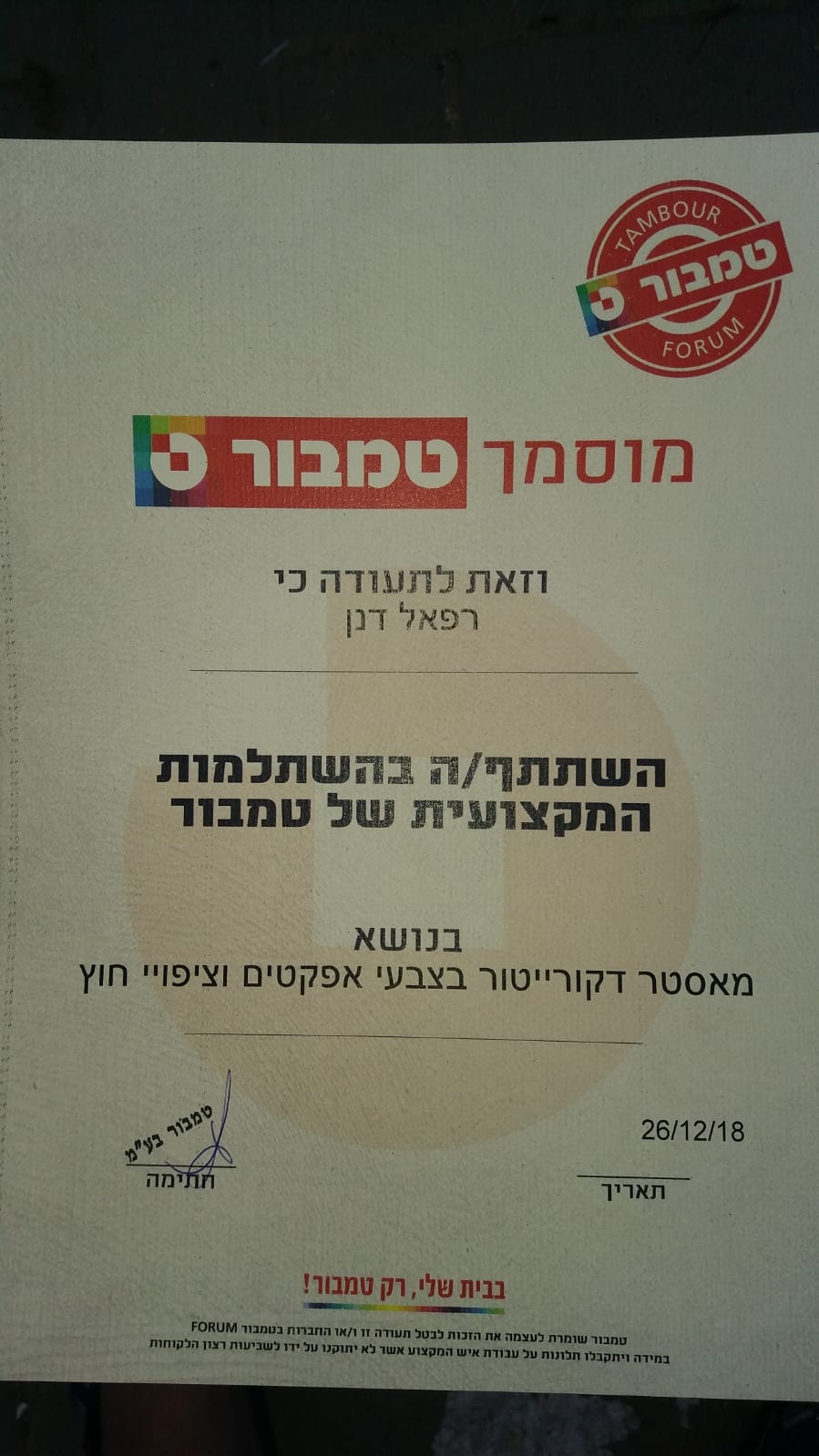 רפאל דנן, צבעי באזור מרכז והשפלה. מתמחה כבר 20 שנה בכל עבודות הצבע. צביעה דקורטיבית, עבודות שפכטל ותיקונים, צביעת דירות ומשרדים, חדרי מדרגות, דלתות, משקופים, סורגים ומעקות. רפאל ביצע קורסים והשתלמויות לעבודות צבע וקירות דקורטיביים בחברת "טמבור" העולמית והינו מבין היחידים בישראל בעל תעודת הסמכה מטעם החברה.