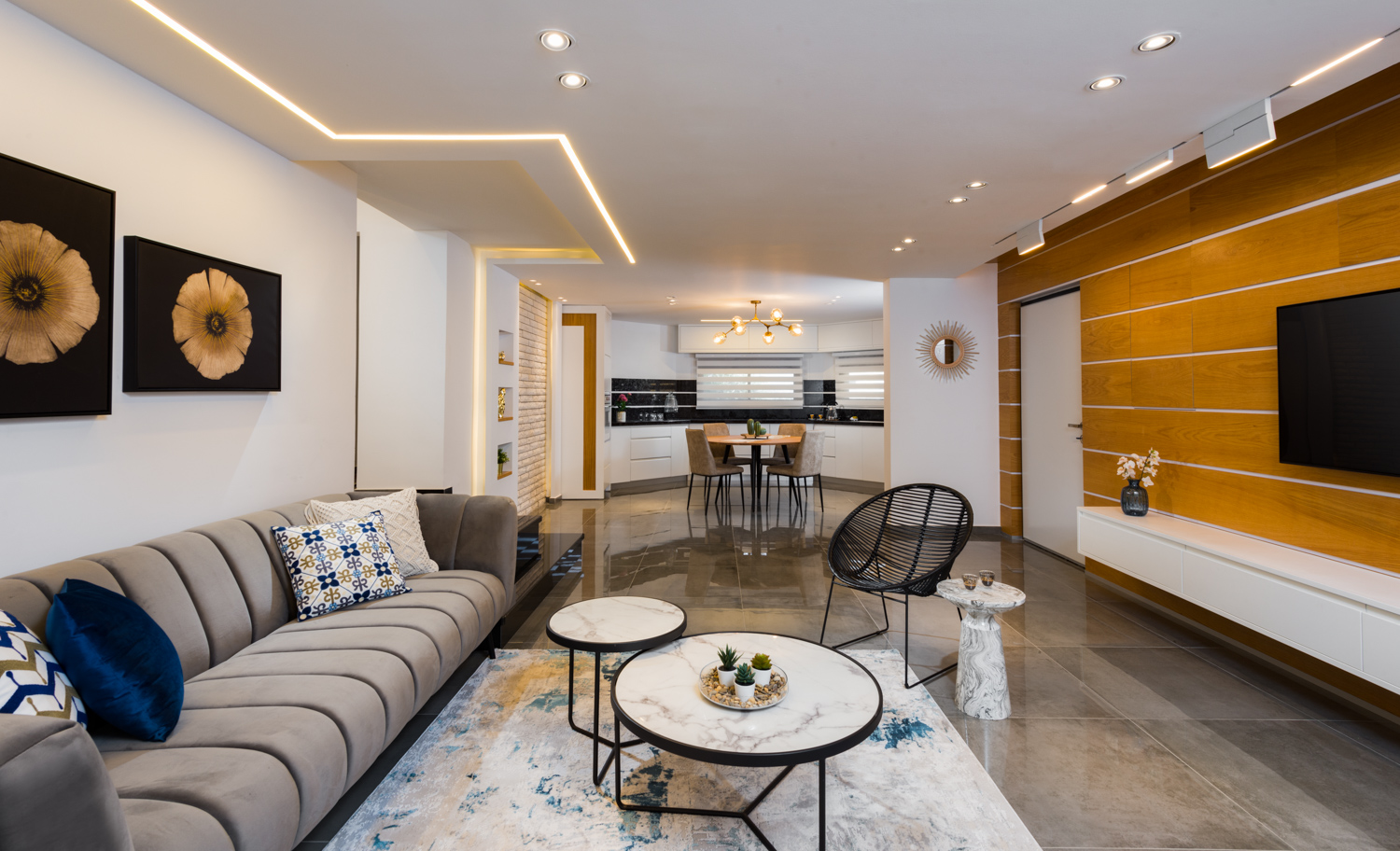 מהתיאור שלך של בית מודרני, עכשווי ומהצבעים של המטבח והריצוף שהעלית, נראה שגוון אפור הוא הבסיס המשותף לצבעוניות.