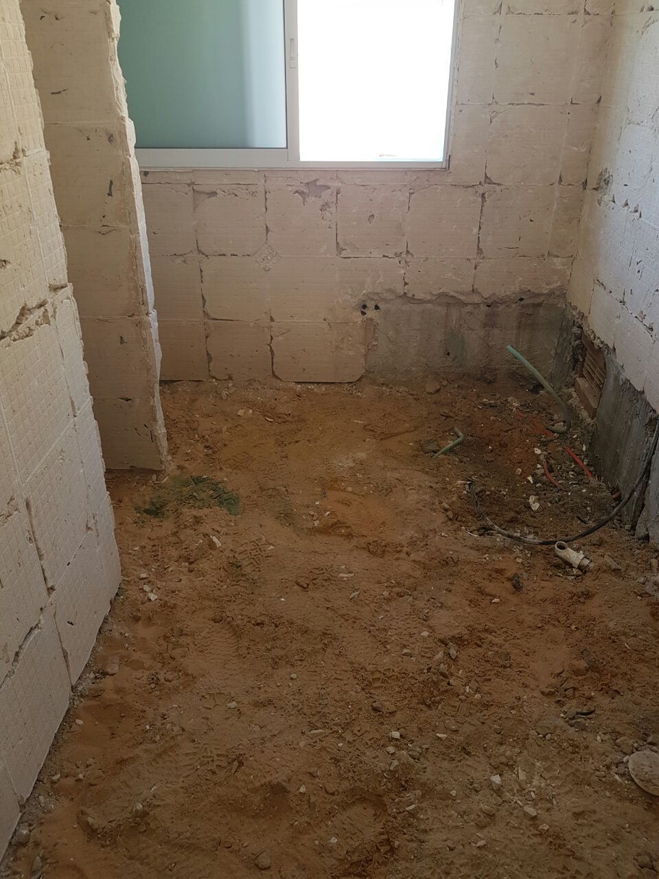 **בניית חדר מקלחת ושרותים כולל ריצוף אינסטלציה וכלים סניטריים חלון/ וונטה