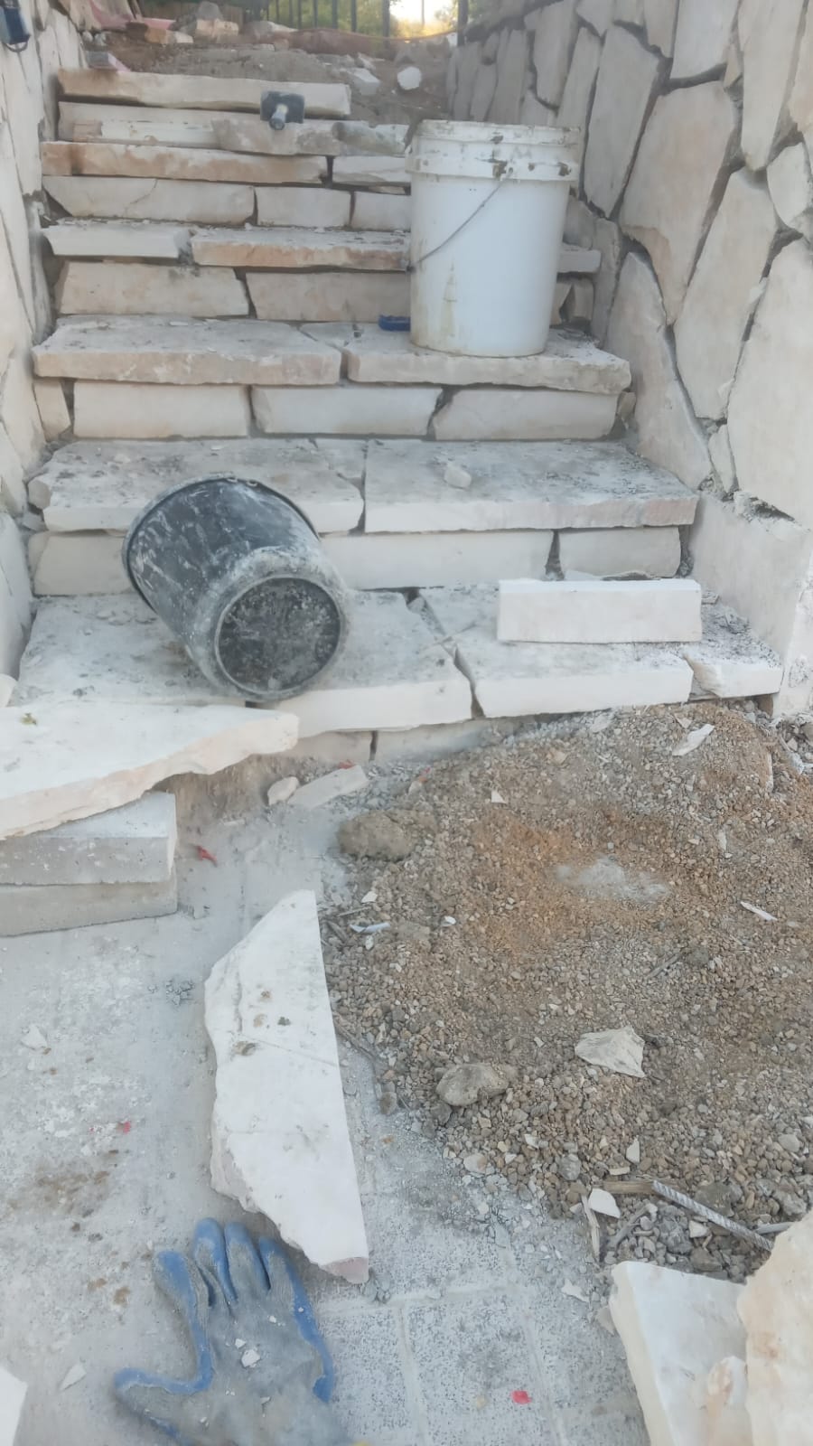 יש שתי דברים שככה צרמו לי, אחד זה השוליים של השביל, הגבולות של השביל לאורכו הם עקומים, כי זה "הדר יוסף" שם, כל אחד בנה איך שהוא רצה, אבל אז מה שקורה זה אם אתה הולך לשוליים ואתה מתחיל משמה את הריצוף שלך אז יוצא שאתה והאמצע שלך הוא לא כזה אמצע, אלא הוא עוקב אחרי המבנה העקום של השביל, זה חוסך לך שבירות או בטון בצדדים, אבל להשאיר את השביל זה קצת מבלבל בעין. אז זה דבר אחד שהייתי מצפה ממנו בתור מקצוען, לבוא להגיד לי: "תשמע, יש שתי אופציות לעשות כאן, ככה או ככה".