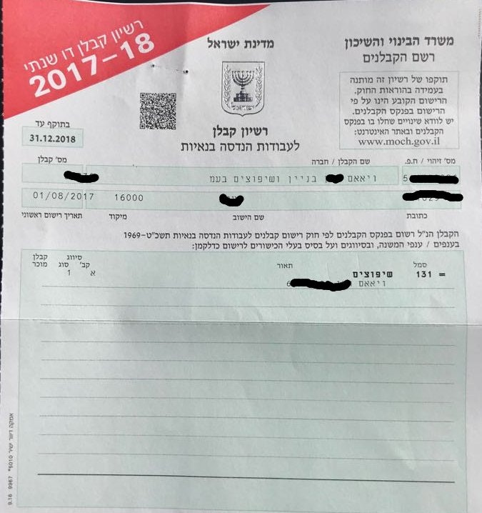 קבלן שיפוצים רשום (סיווג 131)