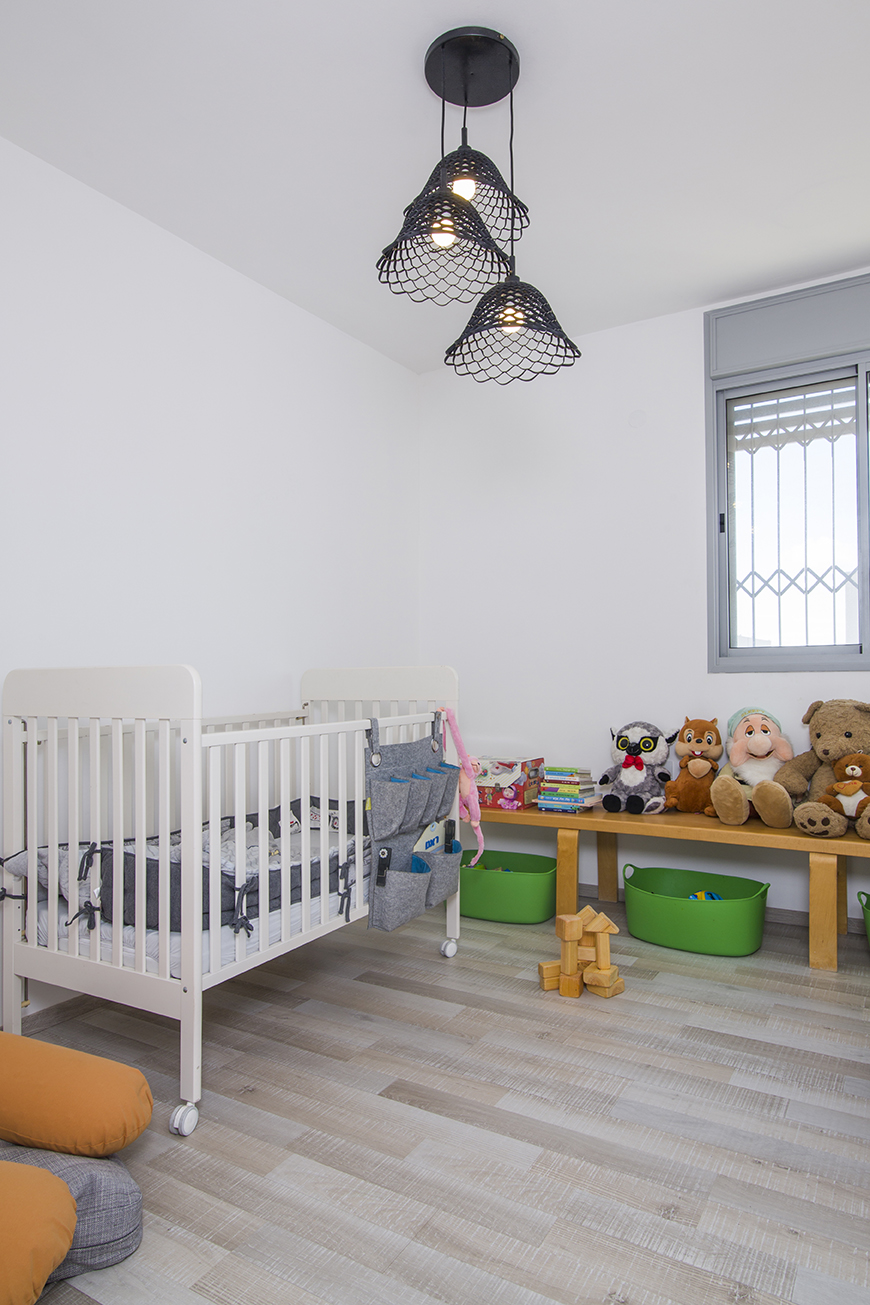 חדר הממ"ד הוסב לאירוח וחדר ילדים עם שפע צעצועים ומשחקים. גם לחדר הרחצה ניתן טאץ' צבעוני כבר בדלת הכניסה אליו, שהוזמנה בצבע תכלת ובולטת על רקע שאר דלתות הקומה הלבנות.