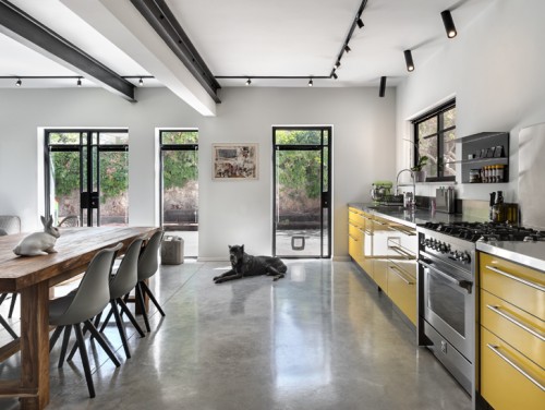 בית פרטי רב מפלסי עוצב בסגנון תעשייתי, תוך שימוש בחומרים כמו בטון ופלדה בשילוב עם עץ טבעי למראה אולטרה שיקי