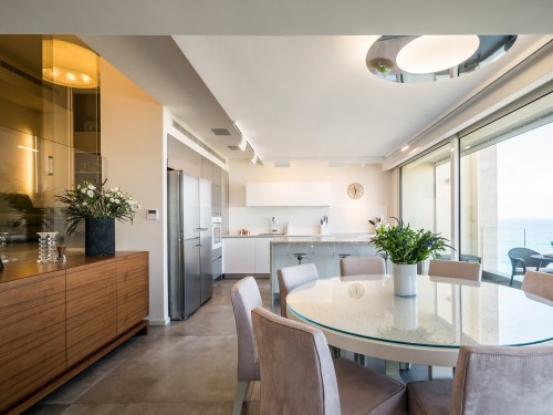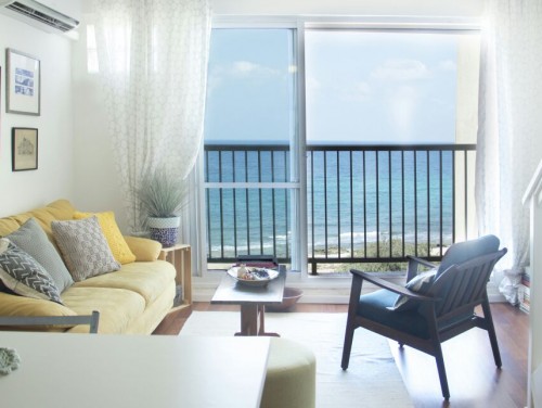 הים האהוב על בעלי הדירה היווה השראה לפלטת הצבעים בעיצוב הפנים, וסיפק את התפאורה המושלמת מבחוץ