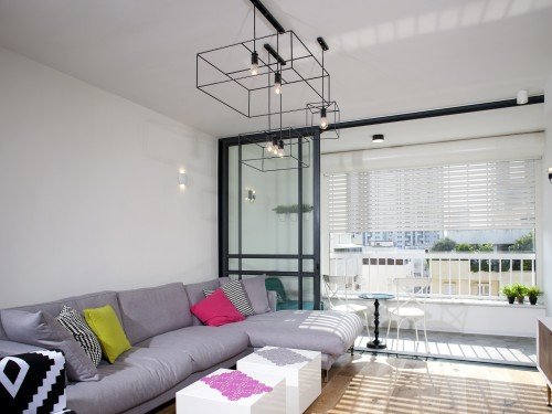 דירה שלושה חדרים עברה שינוי דראסטי באמצעות שימוש בחומרים לא שגרתיים ושימת דגש על האפקט הדרמטי