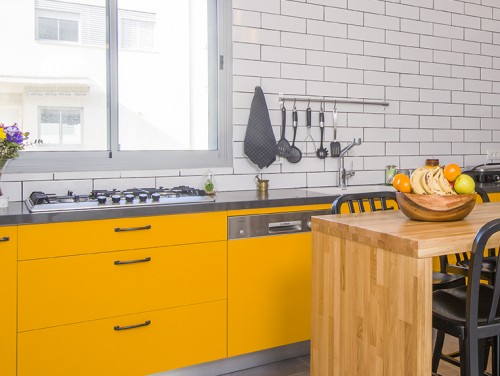 הלבשה מחדש של בית בטבעון תוך שימוש בפלאטת צבעים נועזת והתחשבות בסביבה טבולת הירק הביא לתוצאה ססגונית ומרנינה