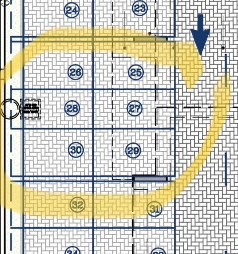 בנוסף, לאחרונה נוקה מגרש החניה באתר הבנייה של הבניין והופתעתי כשראיתי שהחניה שלי (אמצעית מתוך 3 חניות) צרה משמעותית מהחניות הצמודות. מצרפת תמונה בה החניה שלי מסומנת במספרים 28-27. האם נכון שצריך למדוד את הרוחב מאמצע קו ההפרדה עד לאמצע קו ההפרדה השני? איך בדיוק צריך למדוד את האורך של החניה ? האם צריך למדוד את רוחב המעבר המוביל לחניה ואיך? ככל שיתברר שהחניה שלי אכן קטנה מהנדרש, מה ניתן לעשות בשלב הזה שהבניה טרם הסתיימה? תודה רבה