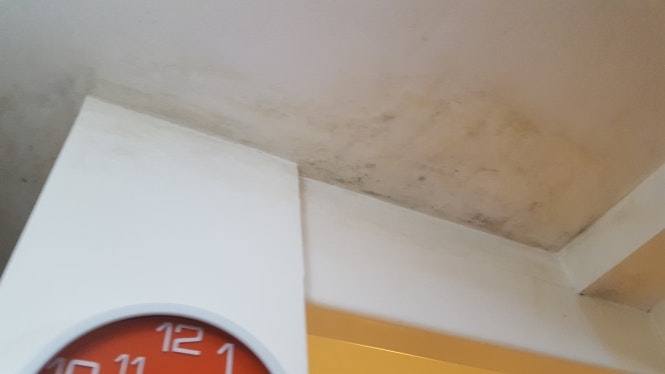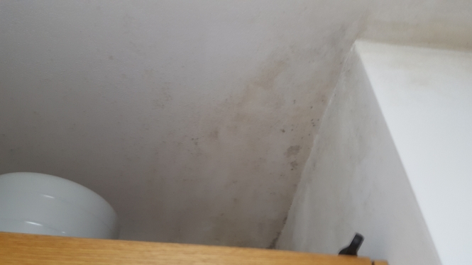 לעומת זאת אני רואה כאן סימני לחות ורטיבות (במונה הראשונה שממש רואים את הסימני נזילה) בנוסף לעובש. כמו כן, שמתי לב שהעובש השחור התחיל והתגבר כל פעם אחרי הגשם.