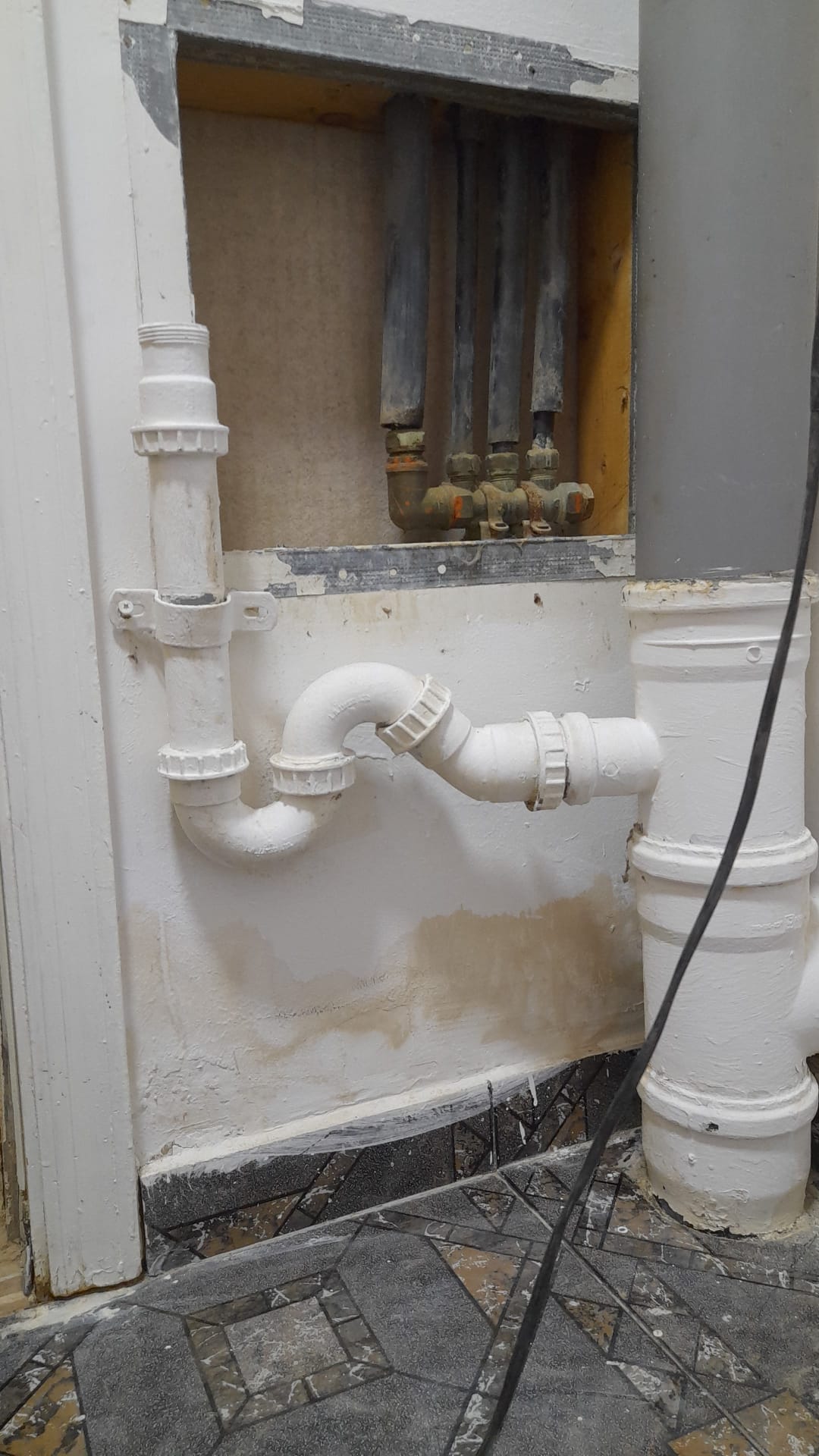 הצינור הקטן הלבן עבור מכונת כביסה אם אין שם כלום סגור עם ניילון שלא יצא ריח הצינור האפור הוא להוצאת ריח מהשירותים לאויר הפתוח