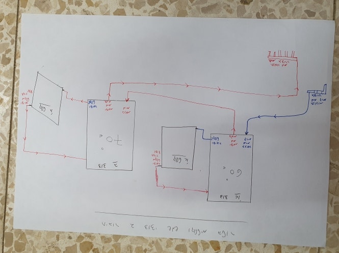 חברים שאלה, בפנימייה לנערים נדרש להתקין עוד דוד שמש נוסף וקולט כדי שהמים יספיקו למקלחת עבור 15 איש, האם השרטוט המצורף זה הדרך הנכונה לבצע זאת. ( לא ניתן להרכיב יונקרס או אמצעים אחרים לחימום) תודה
