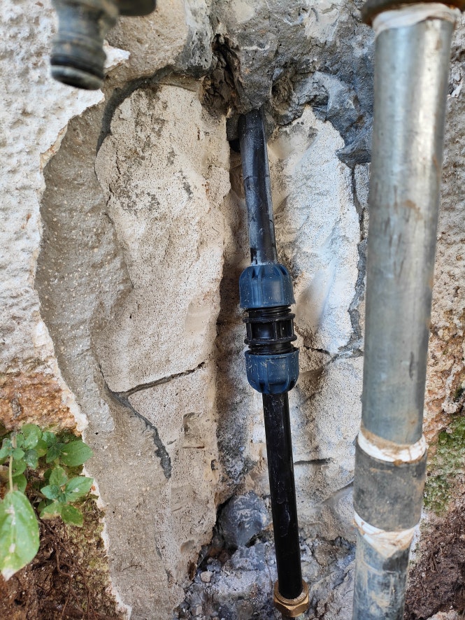 אינסטלטור מטעם הביטוח התקין מצמד פלסטיק לתיקון של נזילה בצינור בקיר. אני די בטוח שהצנרת היא sp.