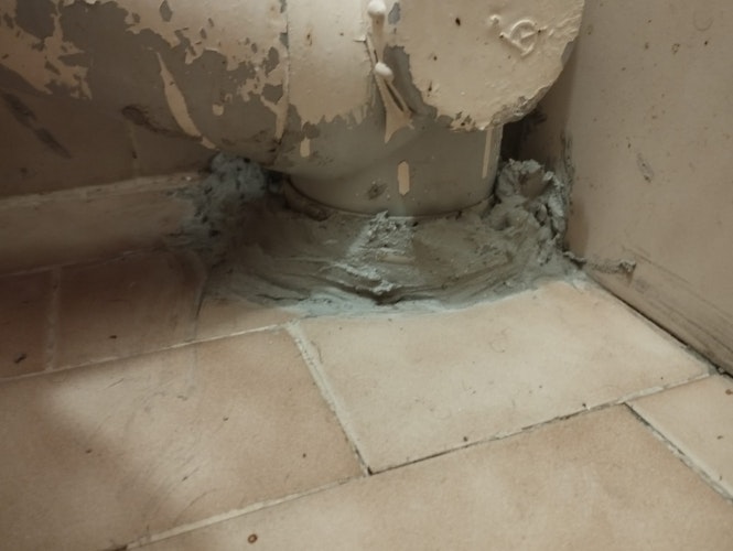 אינסטלטור ביצע איטום בחדר שירותים.