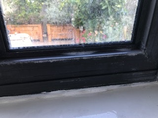 סימני מים בחלון קליל במקלחת שמים נוגעים בו בעת המקלחת