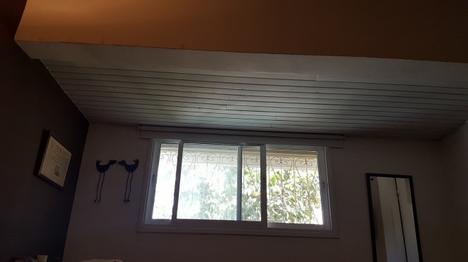 מצורפת תמונה של הרחבת החדר, כולל תקרת העץ והחלון הפונה לשכנים.