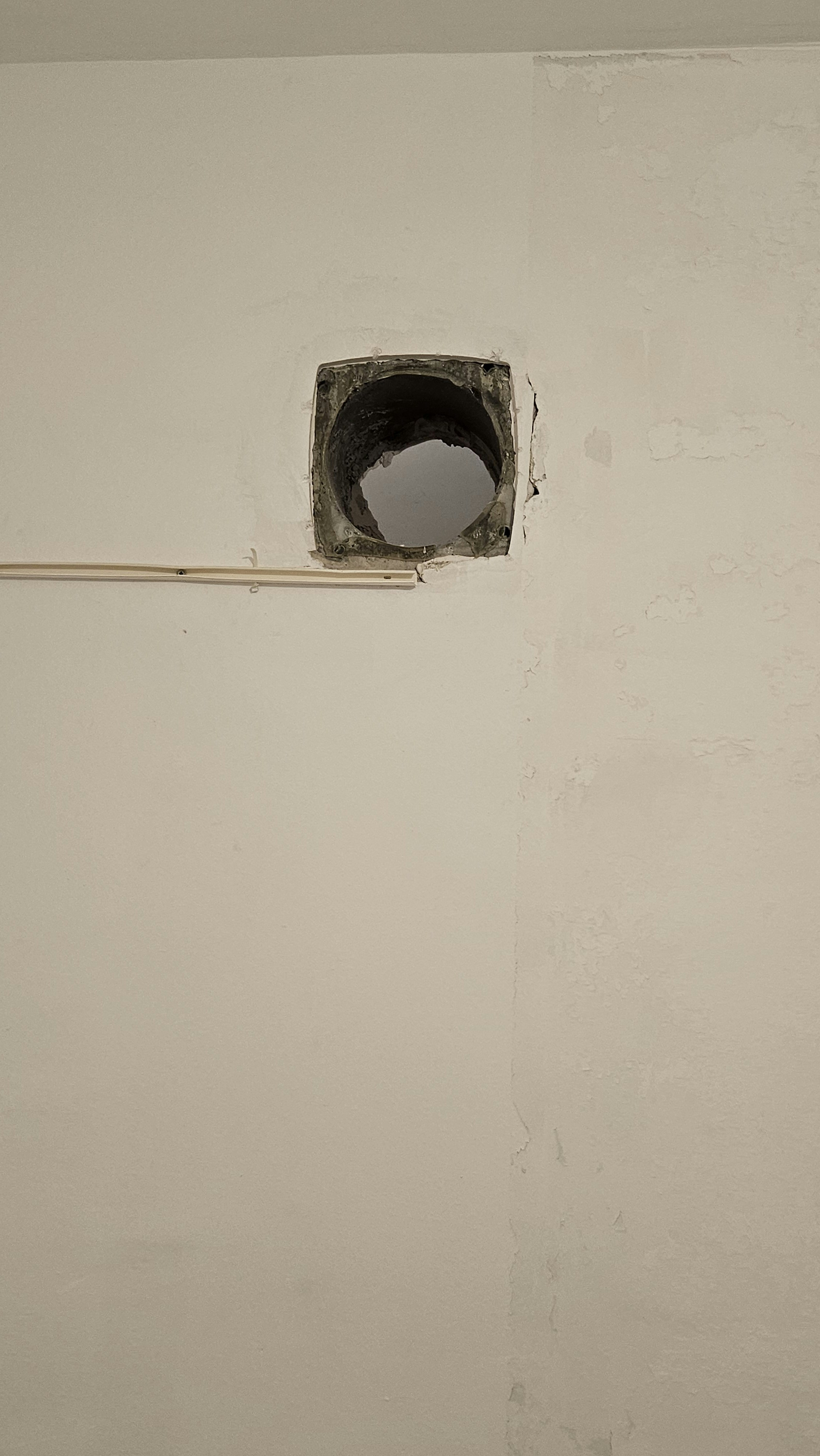 היי, בממ"ד שלנו מול דלת הכניסה יש "חור" עגול, כנראה היה שם צינור אוורור שפורק, מצ"ב תמונה. אני רוצה לאטום אותו, אם באמת היה שם צינור אוורור אז להתקין חדש. למי קוראים? איזה בעל מקצוע? די דחוף לאור המצב...