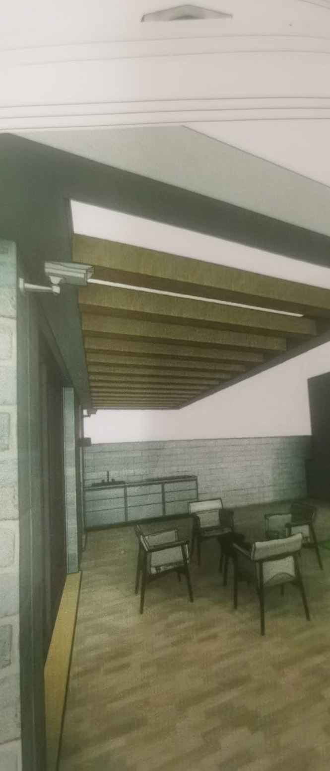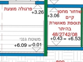 פרגולה נשענת על המחסן ועל החומה מצד אחד