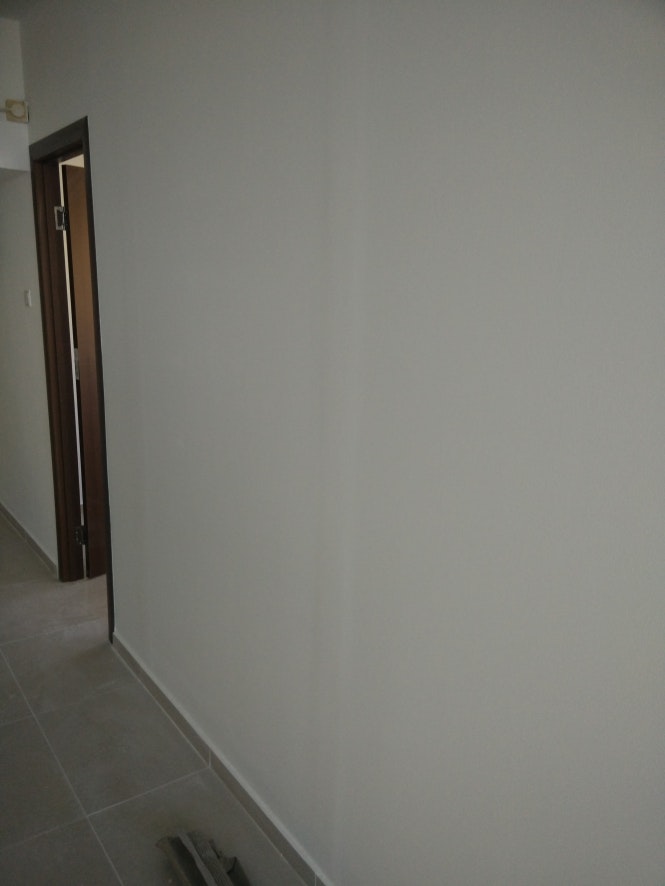 הקבלן בנה לנו קיר של 2 מטר מגבס. ובצד החיצוני שלו שפונה לסלון החיבורים של הפלטות מאוד בולטים. הקבלן עשה 3 ידיים של צבע ולאחר מכן שהחיבור עדיין נראה בולט לעין החליף רולר לטקסטורה אחרת צבע בסיס ואז עוד 2 שכבות אקרילי.