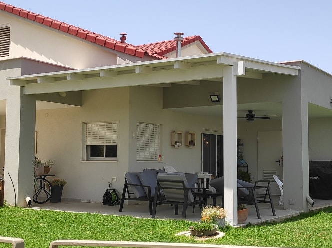 לאחרונה יצקו בחצרנו משטח בטון בעובי 10 ס"מ כהכנה לריצוף. מתחת ליציקה הקבלן הניח מצע מחלוטה על אדמת הגינה המקורית. טרם הריצוף אנו מתכננים לקרות את המשטח בפרגולה שנתמכת עם עמוד אחד של אורן גושני לפינת המשטח החדש כששאר שטחה מעוגן עם קורות לקיר הבית. שטחה כ 19 מ"ר בקירוב. החיפוי העליון יהיה מרעפי פלדה בעובי 0.6 של רב רעף. 2 שאלות שרציתי להעלות: 1. האם עובי היציקה (10 ס"מ) אמור להספיק כתשתית לעמוד הבודד שיעוגן לרצפה? 2. בהמשך לשאלה הקודמת, האם מומלץ לעגן את תושבת העמוד עם בורג ג'מבו ארוך של 10 ס"מ (קוטר 11) או שניתן להסתפק בבורג ג'מבו קצר באורך של 5 ס"מ? זאת מחשש שבורג ארוך עלול לחדור את מלוא עובי היציקה ואולי להחליש את נקודת העיגון או חלילה לסדוק את הבטון.. מצרף תמונה של פרגולה עם מבנה כמעט זהה לזו שאנו מתכננים(הבדל היחיד הוא בחיפוי העליון שכאן מורכב מיריעות ביטומניות דמויי שינגלס) בתודה מראש