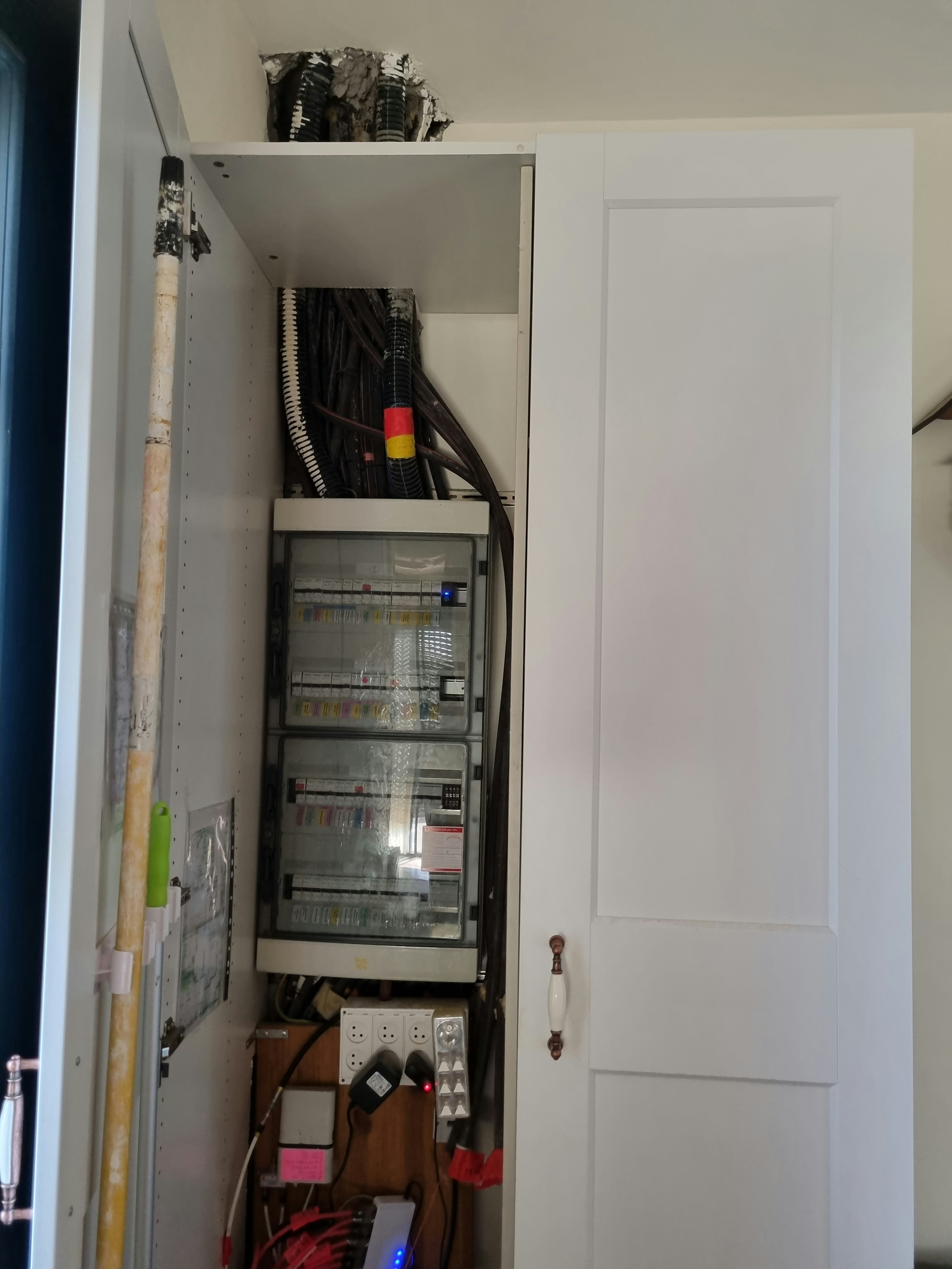 שלום האם חובה להסתיר את הצינורות השחורים בתמונה המצ"ב? רק מה שמעל הלוח? ומה שמתחת ללוח מאחורי לוח העץ? (לפני לוח העץ זה צנרת תקשורת לא חשמל) האם מותר להסתיר בגבס? כי הצינורות לא ירוקים... האם מותר להסתיר אותם עם לוחות עץ? תודה רבה