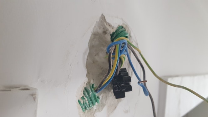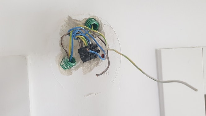 זה מה שגיליתי מאחורי המנורה על הקיר, האם זה חוקי לחבר כך ללא קופסת חיבורים?