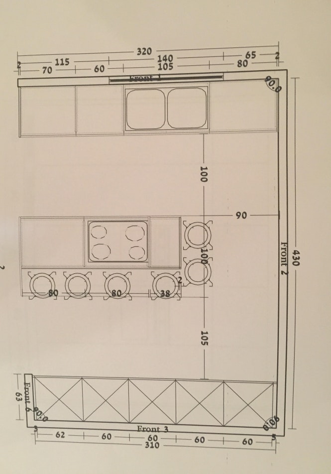 בתכנון מטבח צריך לקחת בחשבון שיש משולש בין הכיור לכיריים והמקרר, כרגע אין לך את זה ולכן זה אינו נכון עבורכם.