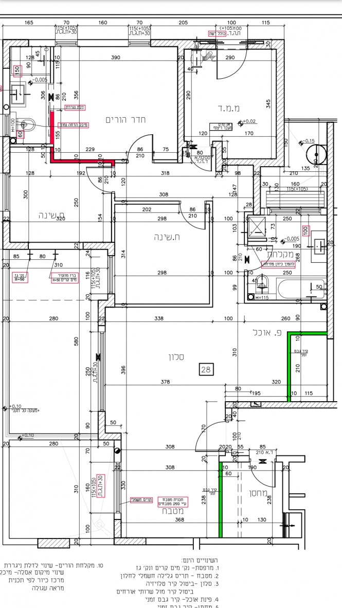 להתעלם מהקיר האדום בסלון, במטבח הקיר האדום זז 70 ס''מ לכיוון המחסן.