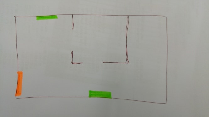 אשמח לדעת מה עדיף, האם להתקין מזגן אחד גדול בסימון הכתום או 2 מזגנים יותר קטנים בסימונים הירוקים. גם מבחינת יעילות הקירור וגם מבחינת צריכת החשמל.