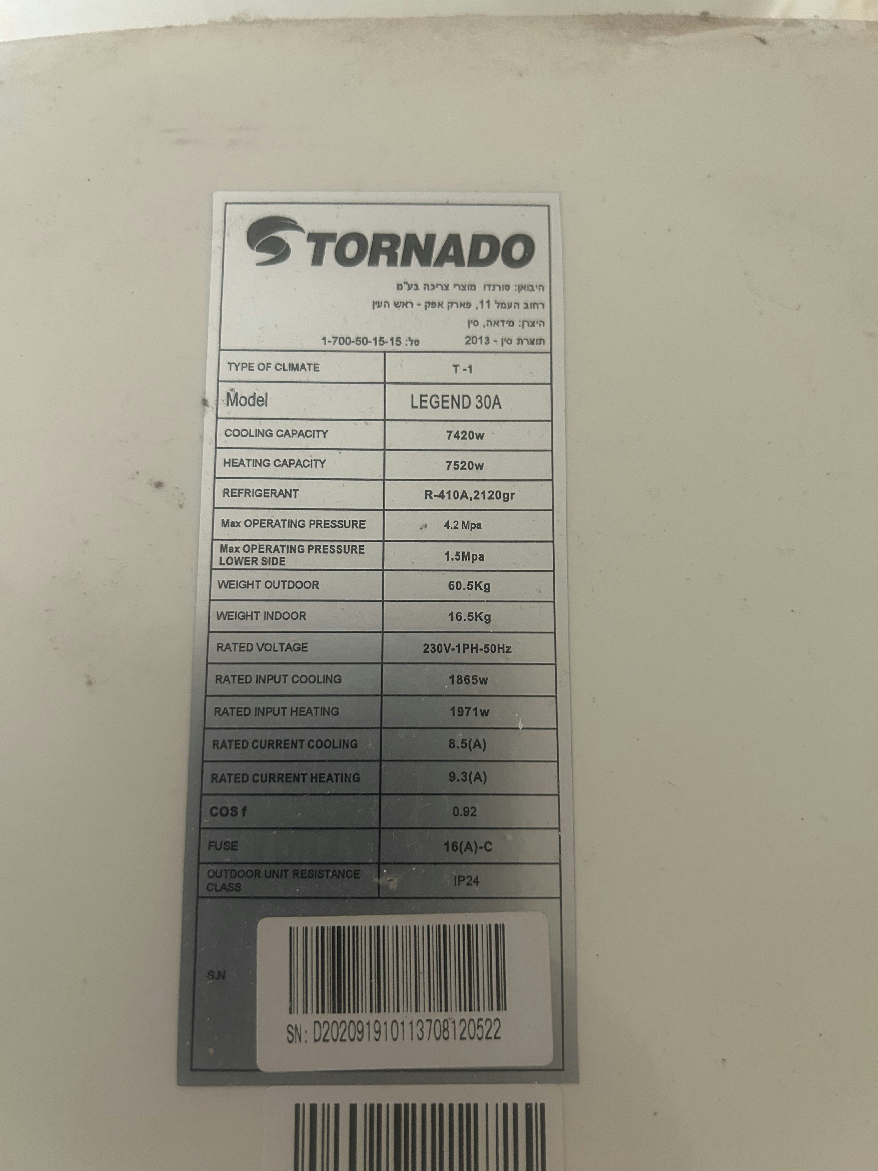 חיישנים למזגן טורנדו רגיל