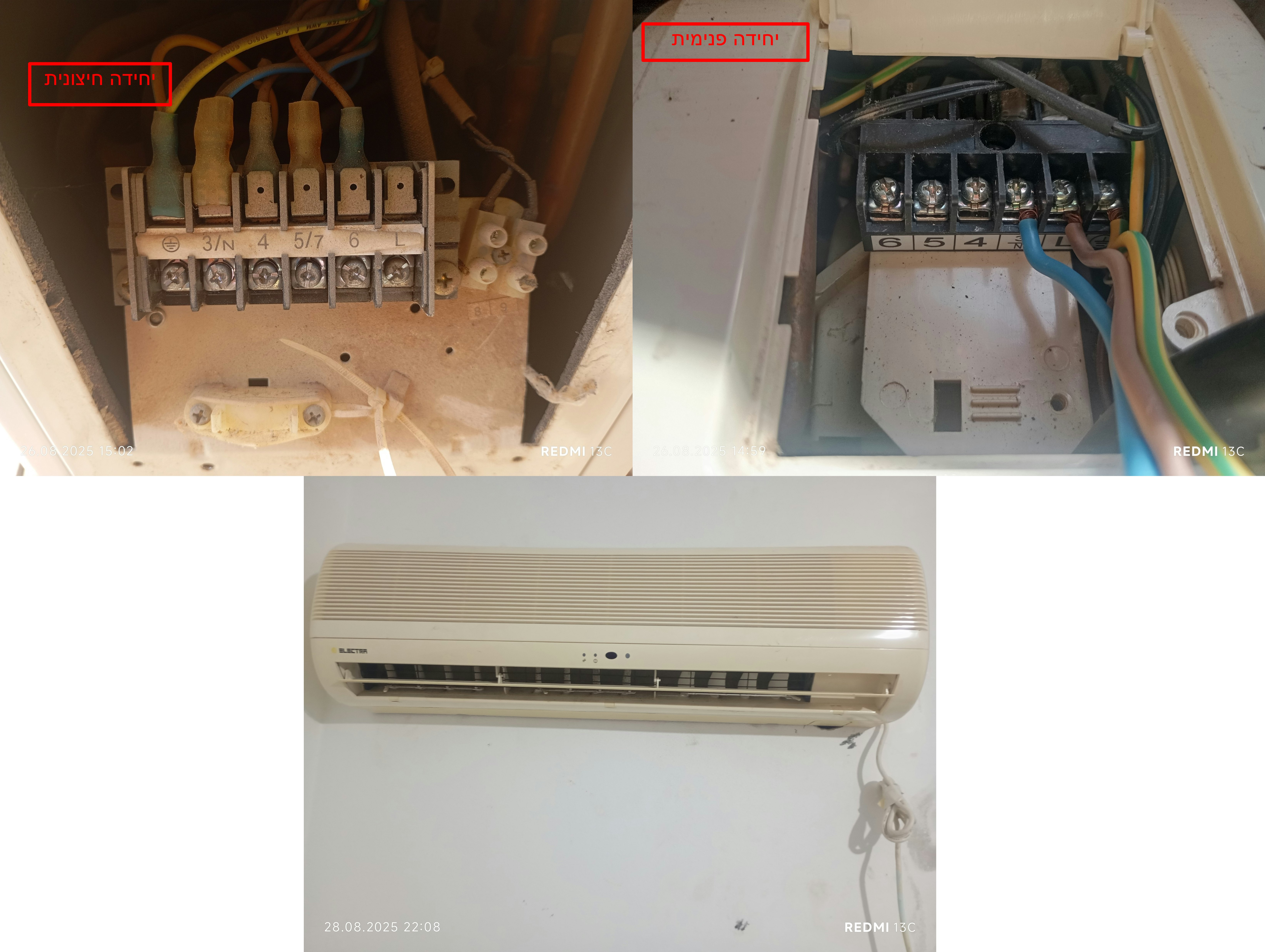 שלום יש לי מזגן אלקטרה ישן, ואני לא זוכר את החיבורים של החשמל, ואשמח לעזרה. 8-9 ביחידה החיצונית זה תקשורת. את השאר מחברים את הכל? מצורפת תמונה תודה רבה