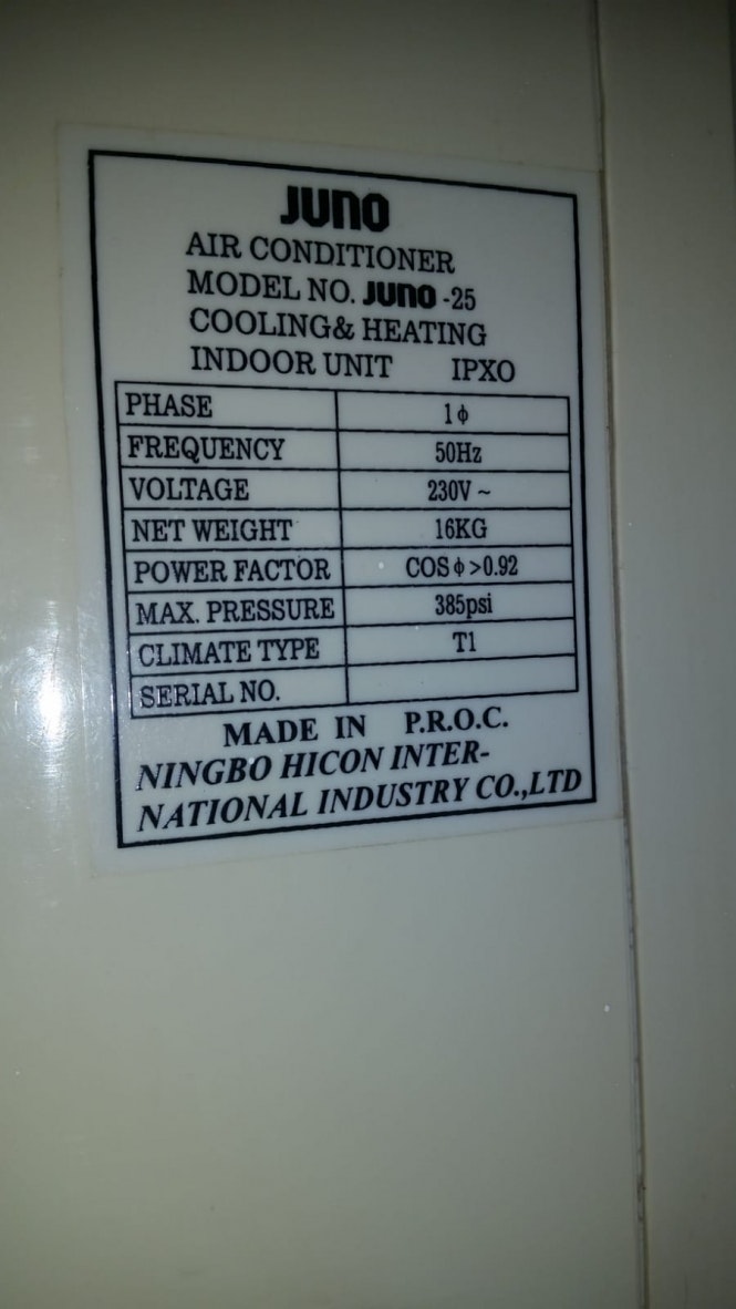 בדירה אליה עברנו לאחרונה יש מזגן סיני הנושא את שם המותג - JUNO 25