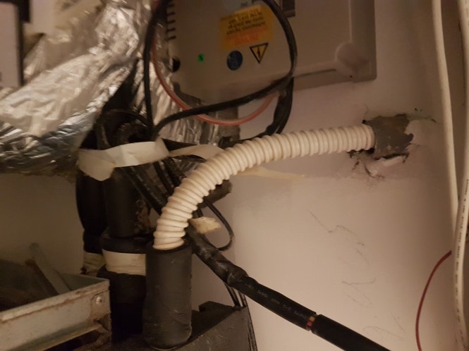 שאלה למתקינים/טכנאים בלבד: מזגן מיני מרכזי מדגם ג'מייקה T50 בשבועיים האחרונים (ולראשונה מתחילת השימוש שלי בו , מזגן בן כ-10 שנים) , החל ריח של ביוב כשהמזגן לא בפעולה , שככל הנראה מגיע מצינור הניקוז שמחובר למאייד. הריח הוא קבוע כשמתקרבים לאיזור בו נמצא המאייד.בבדיקה של צינור הניקוז (הלבן שבתמונה) זיהיתי שככל הנראה מקור הריח הוא אכן מצינור הניקוז. יש שם לכלוך שחור לכל אורך הצינור מבפנים עד למאייד לדעתי.לא הצלחתי לנקות את כל הלכלוך מבפנים , ועדיין יש ריח. שתי שאלות: 1.האם החיבור של צינור הניקוז לפתח הניקוז תקין וסטנדרטי? 2.כיצד ניתן להתגבר על ריח הביוב? תודה על המענה