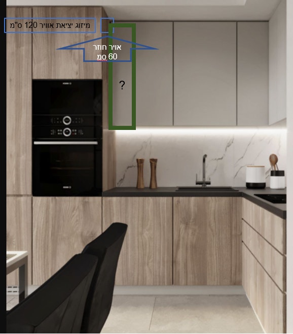 מיזוג VRF יחידה נסתרת בארון מטבח מעל תנורים ומזווה ,רוחב 120 עומק 60.