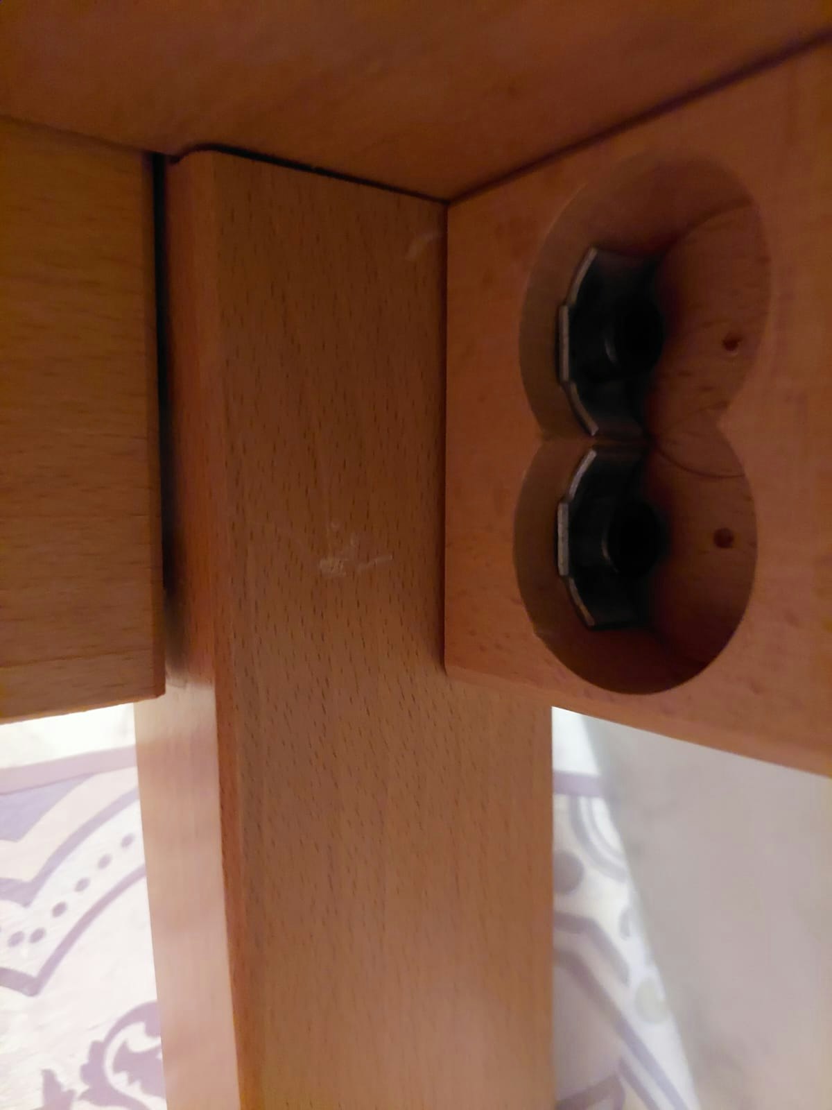 שלום רב ותודה מראש לעונים- בשולחן בפינת האוכל 2 רגליים החלו לזוז ולא עומדות באופן יציב. מצרף תמונה של החיבורים מתחת לשולחן. החיבור בצד שמאל הוא הרופף. נראה ששם בין הרגל של השולחן לבין השולחן אין בורג שמחבר אולם בסמוך - בצד ימין בתמונה- יש ברגים שאיני מכיר . אשמח להסבר מה הבעיה? כיצד ניתן לסדר זאת?