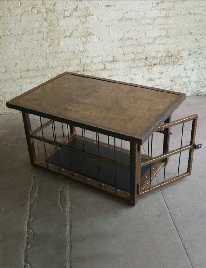 בתחתית השולחן צריך להיות כלוב עם סורגים ממתכת ודלת עם מנעול שיהיה אפשר להיכנס מעל לכלוב יהי השולחן עצמו מעוצב בצורה יפה