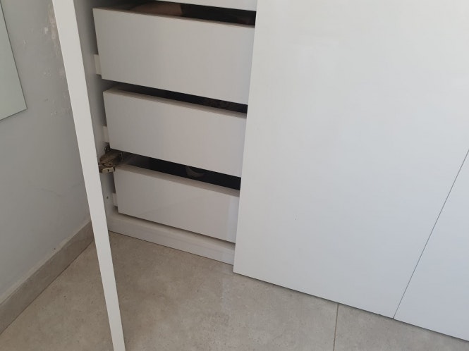 יש לי בחדר השינה ארון גדול ומושקע עם דלתות צבועות בתנור לבן מבריק.