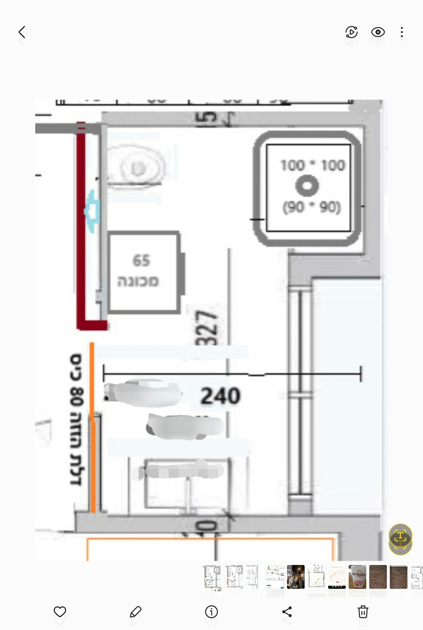 הערות : 1. אסלה צריך קרוב לדלת לא כולם נועלים וממליץ במקום מכונה 65 . 2. לא כדאי דלת הזזה כי הריח יצא החוצה זה לא אטום ממליץ דלת פתיחה שמאלה לכיוון האסלה שיהיה במקום המכונה 65 ויסתיר את האסלה