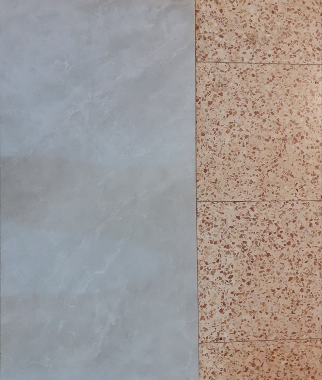 היא קנתה רצפת גרניט פורצלן (40*80) foder dura tiles שממש לא מתאימה לריצוף הטרצו שבסלון (כרגע היא מעונינת להחליף רק במטבח כי שם יש לנו טרצו יותר בהיר שחייבים להחליף) זה לא מתאים גם בגודל ובעיקר בצבע, כמו שנראה בתמונות..דיברנו ביננו והוסכם שכדאי להחליף לרצפה אחרת.. שונה בצבע ובסוג ואולי גם בגודל..חשוב מאוד שהרצפה לא תשרט בקלות, תהיה עמידה לאורך זמן, שלא תספוג נוזלים ושלא יראו לכלוך ושערות ושהתחזוקה היומיומית תהיה נמוכה..