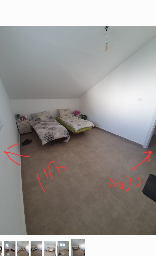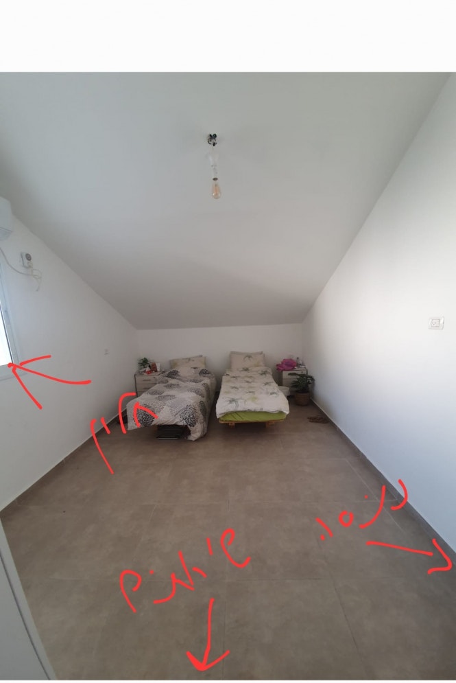 דבר נוסף חשוב בחדר הוא שיש תקרה משופעת שצידה הנמוך נמצא בצלע של המיטה.