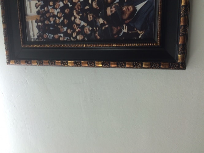 איזה צבע כדאי לקיר בסלון שיש עליו תמונה עם מסגרת חומה עבה?